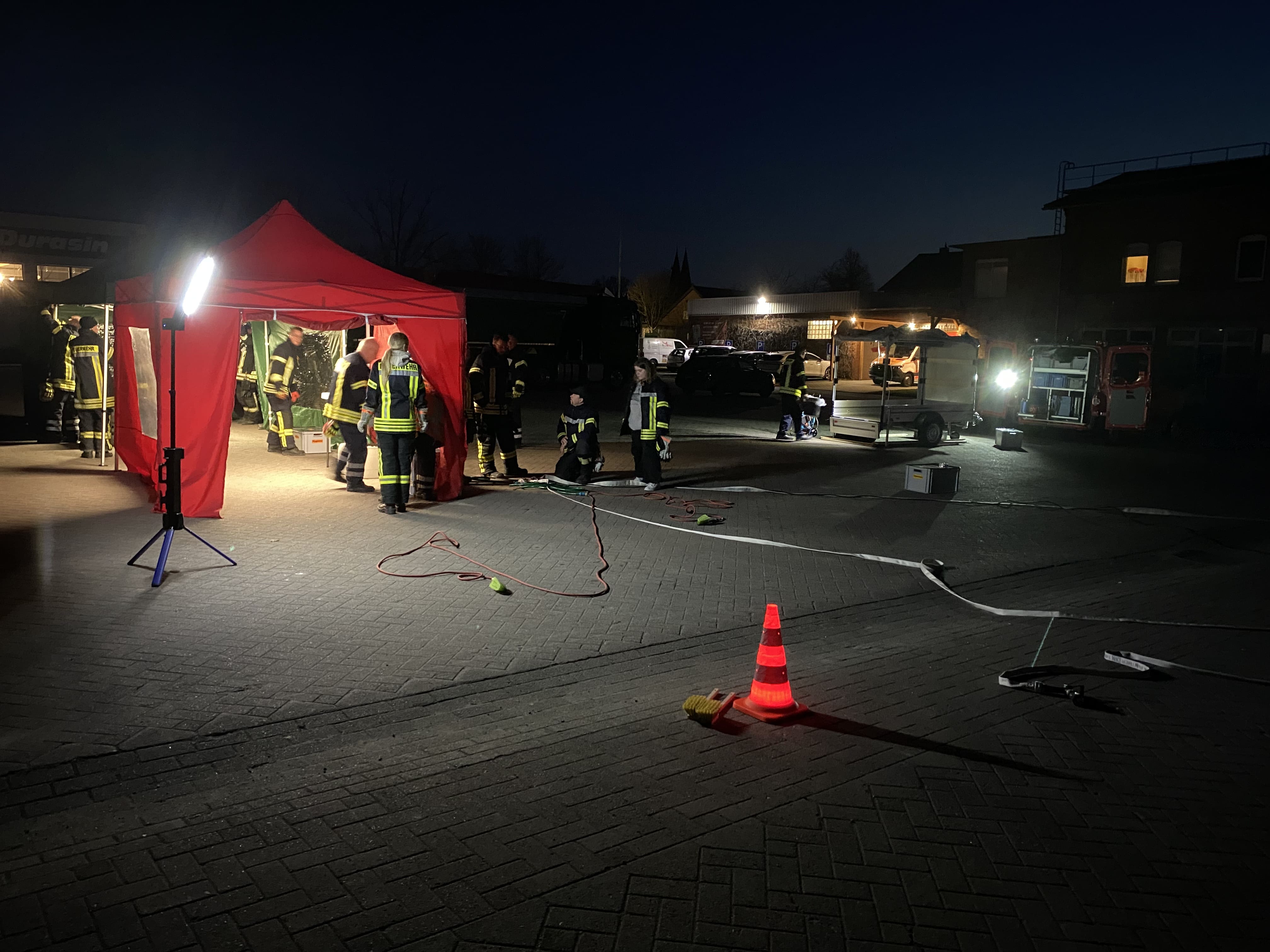Am Freitagabend den 21.03.2025 wurde das neue Hygienemodul durch die Kameraden der Feuerwehr Clauen den Hohenhamelner KameradInnen vorgestellt. Dabei wurde eine gesamte Hygienestrecke aufgebaut. Bestehen tut diese aus einem „Schwarzbereich“ und einem „Weißbereich“. Ziel ist es eine Verschleppung von Kontamination nach Einsätzen zu verhindern. So werden die Atemschutzgeräteträger nach Ihrem Einsatz im ersten Schritt grob von dem geschulten Personal dieses Moduls gereinigt und entkleidet werden. Sind Kleidung und Geräte abgelegt, werden diese in Waschsäcke verstaut und der Feuerwehr Technischen Zentrale (FTZ) in Peine zur professionellen Reinigung zugeführt. Die entkleideten Kameraden haben anschließend die Möglichkeit sich selbst grob zu reinigen und bekommen Ersatzkleidung ausgehändigt.