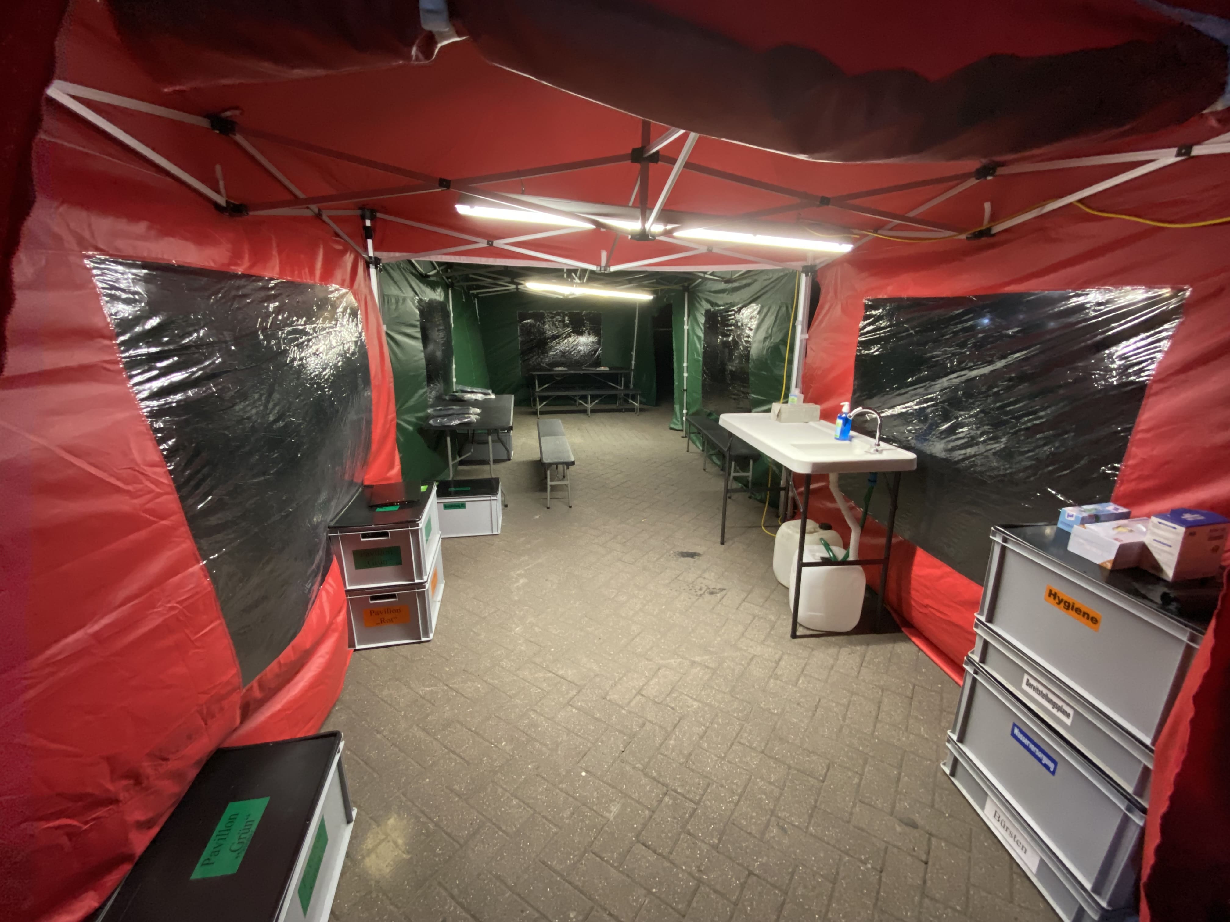 Die Vorstellung des Hygienemoduls soll diesen Ablauf vorstellen. Kameraden der Ortswehren sind dabei gebeten beim Aufbau der Hygienestrecke aktiv mitzuhelfen, damit diese im Einsatzfall unterstützend mitwirken können.